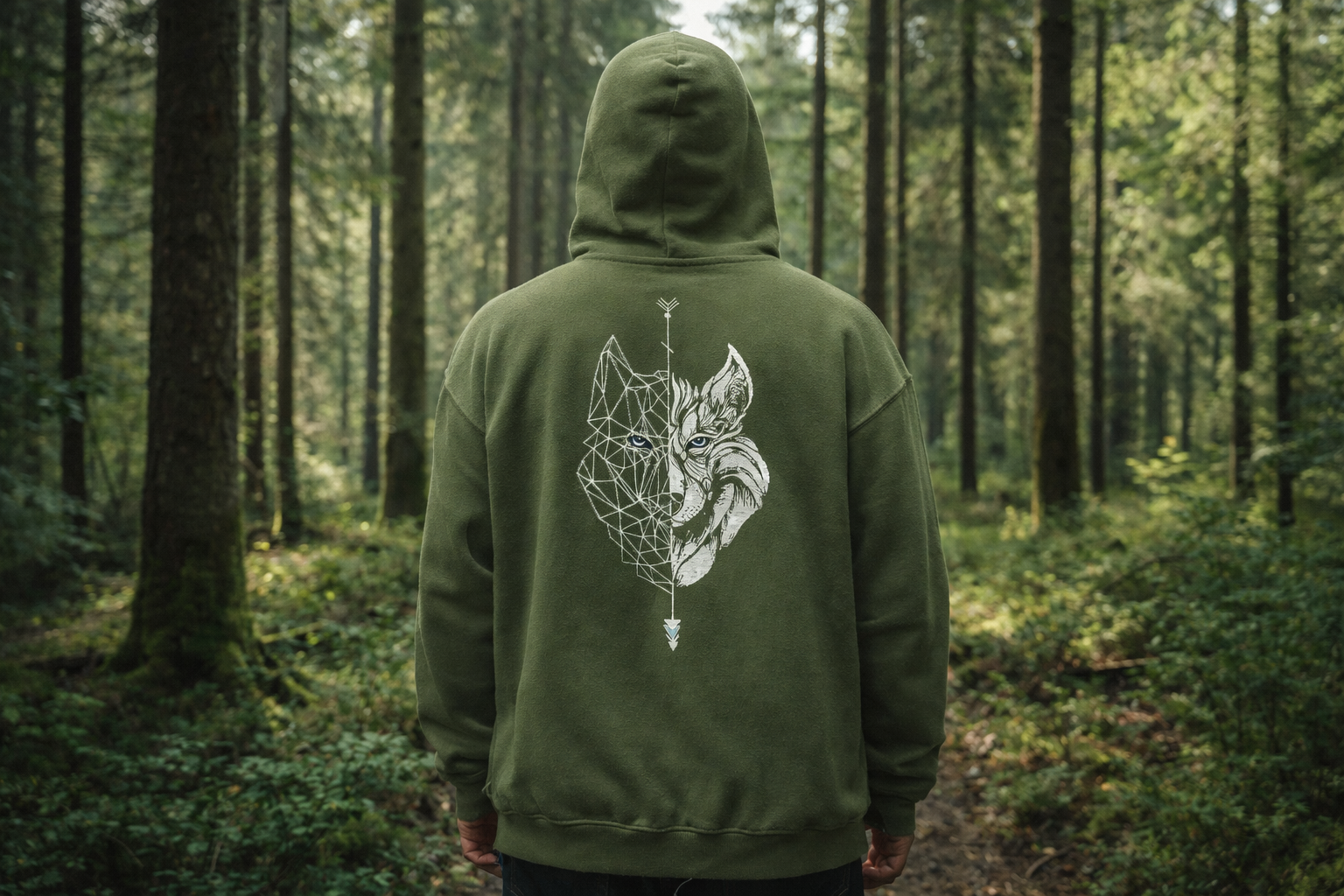 Sudadera Camperwilf® – Verde Militar con Lobo Blanco