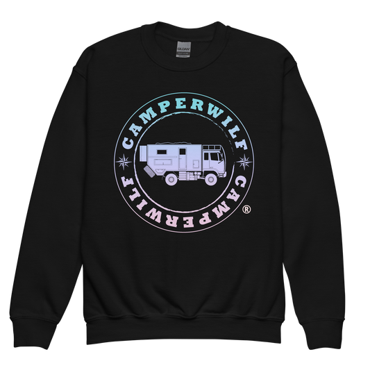 Sudadera sin Capucha Infantil Camperwilf® – Logo Degradado celeste → rosa, color Negro