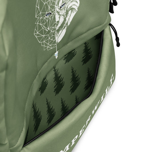 Mochila Musgo Camperwilf® – Lobo Blanco, Cosida a Mano