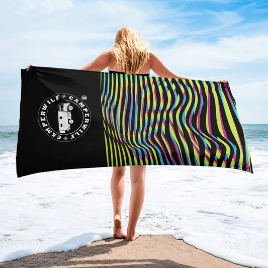 Toalla Óptica Camperwilf® – Vertical, Negro con Curvas de Colores