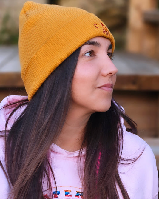Gorro de Algodón Orgánico Camperwilf® – Hoguera, color Mostaza