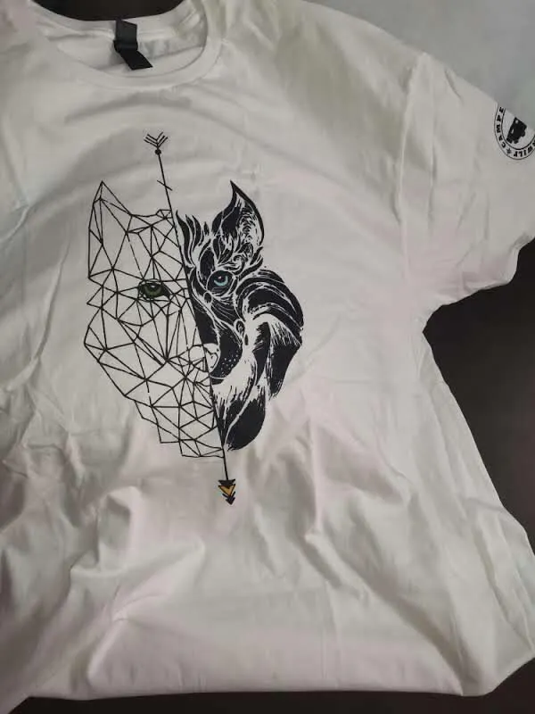 Blanco impecable, lobo negro en el pecho y logo en la manga izquierda, porque aquí no se trata de elegir entre protagonista y secundarios: todos juegan su papel. Perfecta para quienes saben que el contraste es la mejor arma.